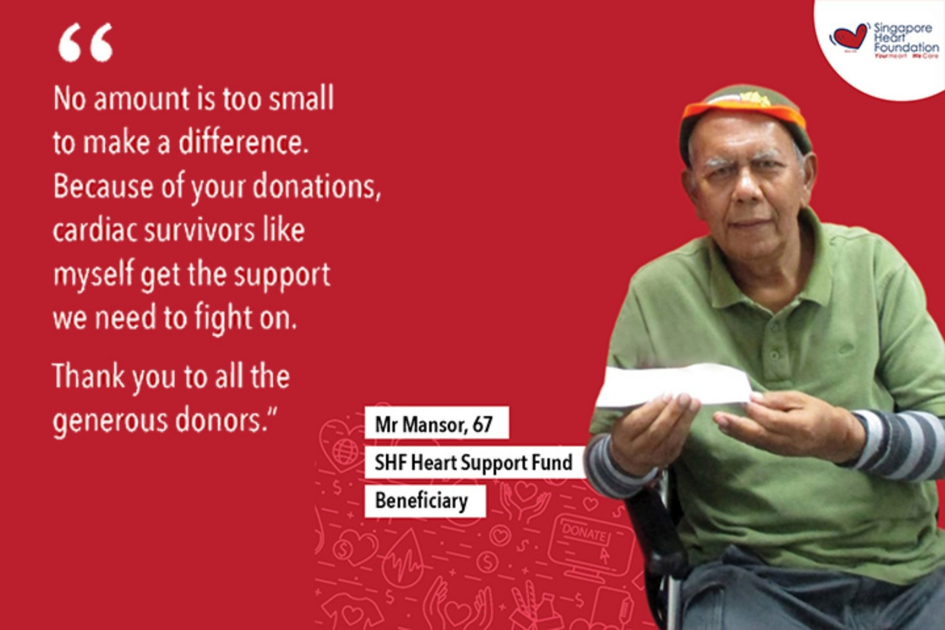 Through the referral of the medical social worker at National University Hospital, Mr Mansor sought emergency relief assistance from the Singapore Heart Foundation (SHF)’s Heart Support Fund last year.