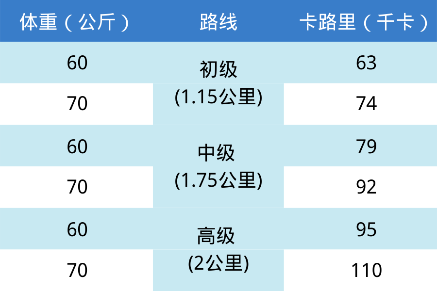 因此,我们设计了三条不同难度和地形的步行路线。在一定时间内完成的步行活动可分为中等强度和高强度体能活动/运动,这是根据个人的健康水平、健康状况和对活动的习惯程度而定的一种衡量标准。