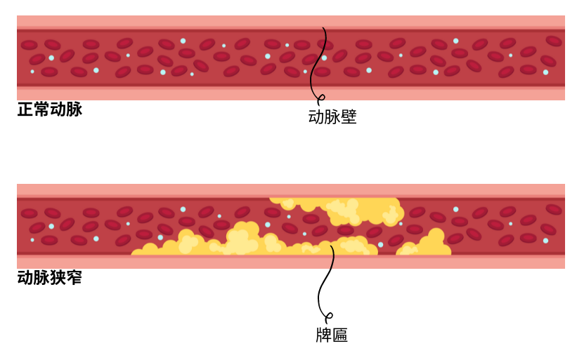 斑块积聚 — 血液中脂肪、胆固醇、钙和其他物质的积聚 — 致使动脉变窄,从而流向心脏的血量减少。冠心病可导致胸痛或不适(心绞痛)、心律不齐(心律失常)、心脏病发作甚至死亡。