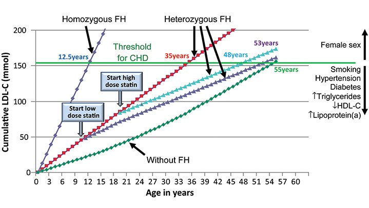 FH患者持续监测导致心脏病发作的其他危险因素是非常重要的。吸烟,高血压,糖尿病,高甘油三酯,低HDL-c和高脂蛋白(a)都会大大增加心脏病发作的风险,FH患者除了降低LDL-c外,还应该努力改善这些不良因素以降低发病风险。