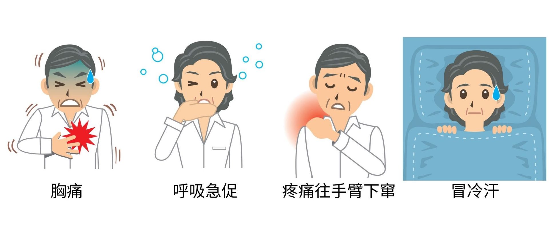 此外,别忽视可能需要急救的症状。记住这些心脏病发作的迹象,紧急时立即拨打995: