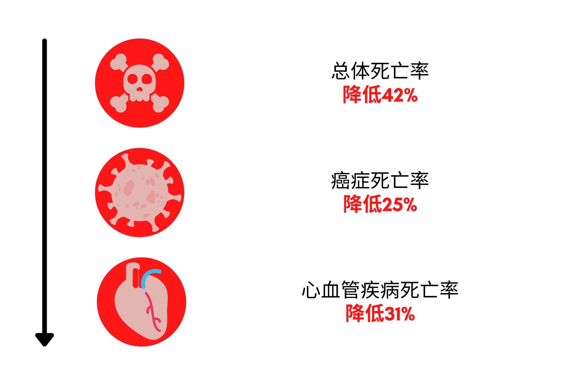 新鲜的蔬菜对于防治疾病最有效果,但果汁并没有显著的效果,而水果罐头甚至会提高死亡率。