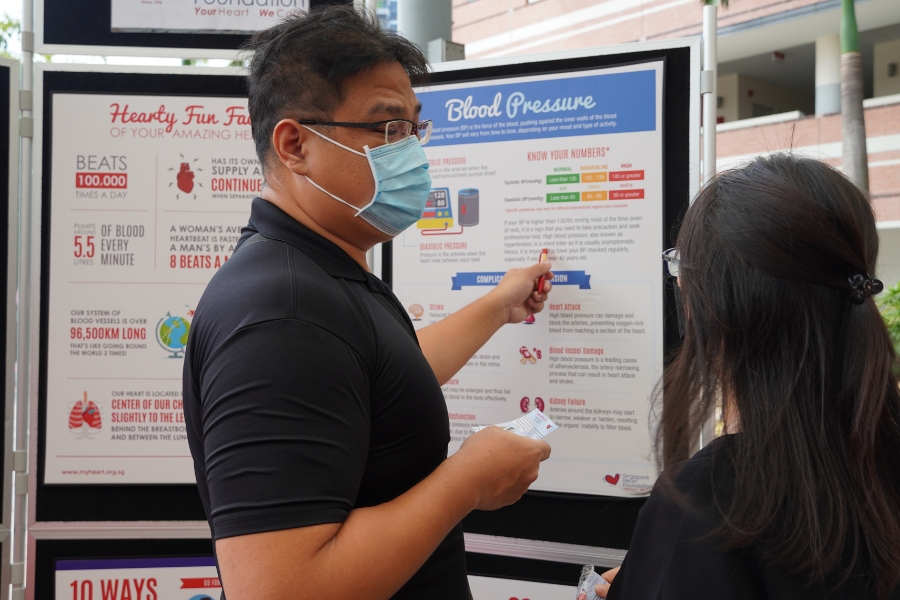 To familiarise the participants with their blood pressure (BP), we provided free BP screenings and introduced them to the dangers of high BP through English and Mandarin BP talks. Participants who attended the talks additionally received a BP monitor to encourage them to put what they had learned into practise at home.