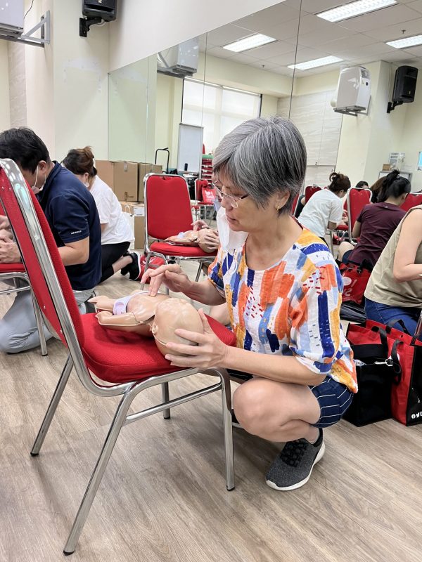 The 2-hour training saw 1 9 participants of all ages, including a young boy and a grandmother. Participants learnt to perform infant CPR and choking relief using the inflatable infant manikin introduced by SHF earlier this year.