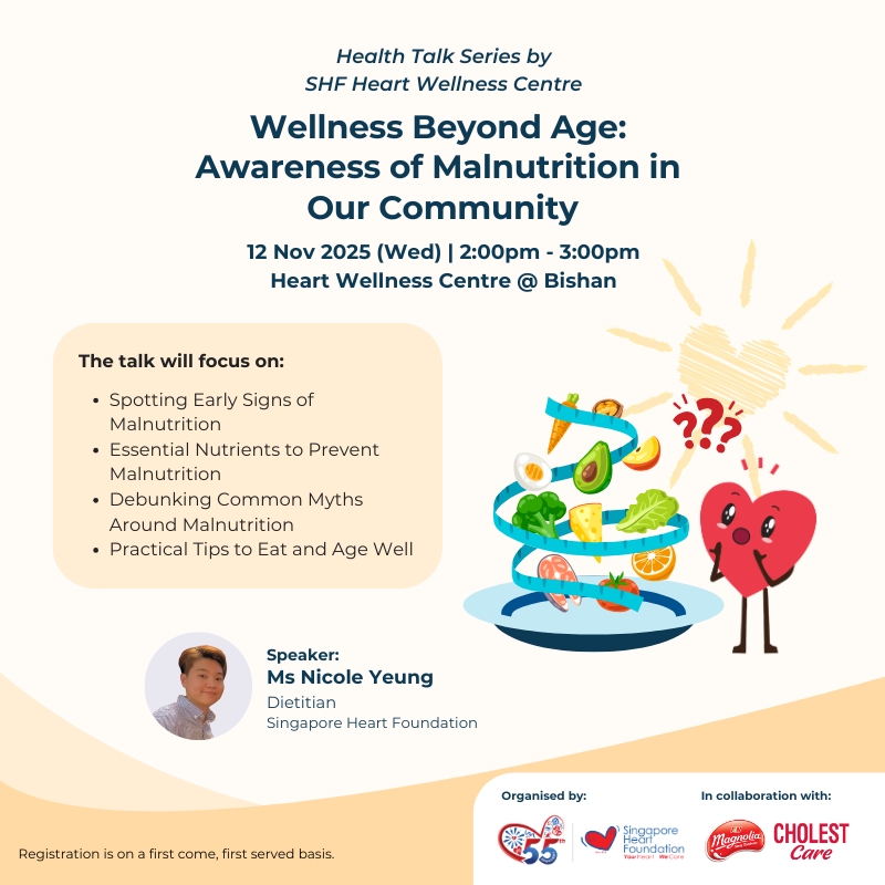 Join our Dietitian Ms Nicole Yeung to take control of your wellness! This session will empower you with the knowledge to identify the risks and early signs of malnutrition.