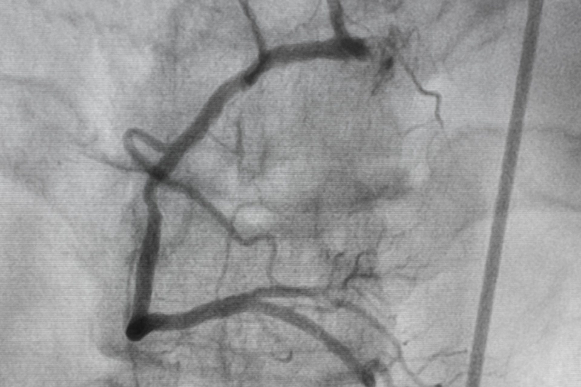 The dye shows up as white lines on the X-rays, with disruption or narrowing of the lines indicating areas where the coronary arteries are obstructed.