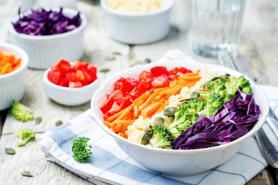 High in soluble fiber, fruit and vegetables prevent the absorption of cholesterol and thus keep your cholesterol at an adequate level. With a variety of colours that represent different vitamins, phytochemicals and antioxidants, a rainbow of 2 servings of fruit and 2 servings and vegetables every day could provide you an array of nutrients and goodness of fibre.