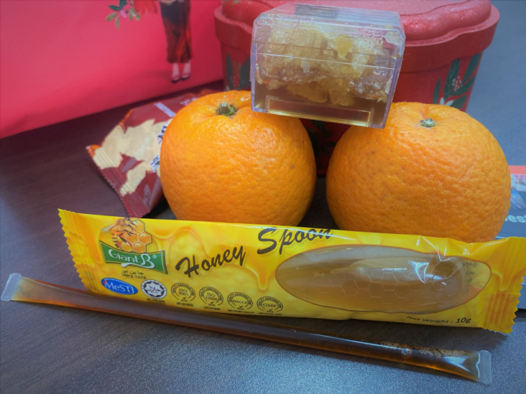 Though we could not have lunch and lo hei together in the office, we managed to do a virtual yum seng (cheers) and wished each other good health for the new year! In replacement of lunch, everyone received a snack pack containing a box of cookies, a pair of oranges and some honeycomb & honey sticks from Royce Fruits Pte Ltd. Thank you to all our sponsors for blessings!
