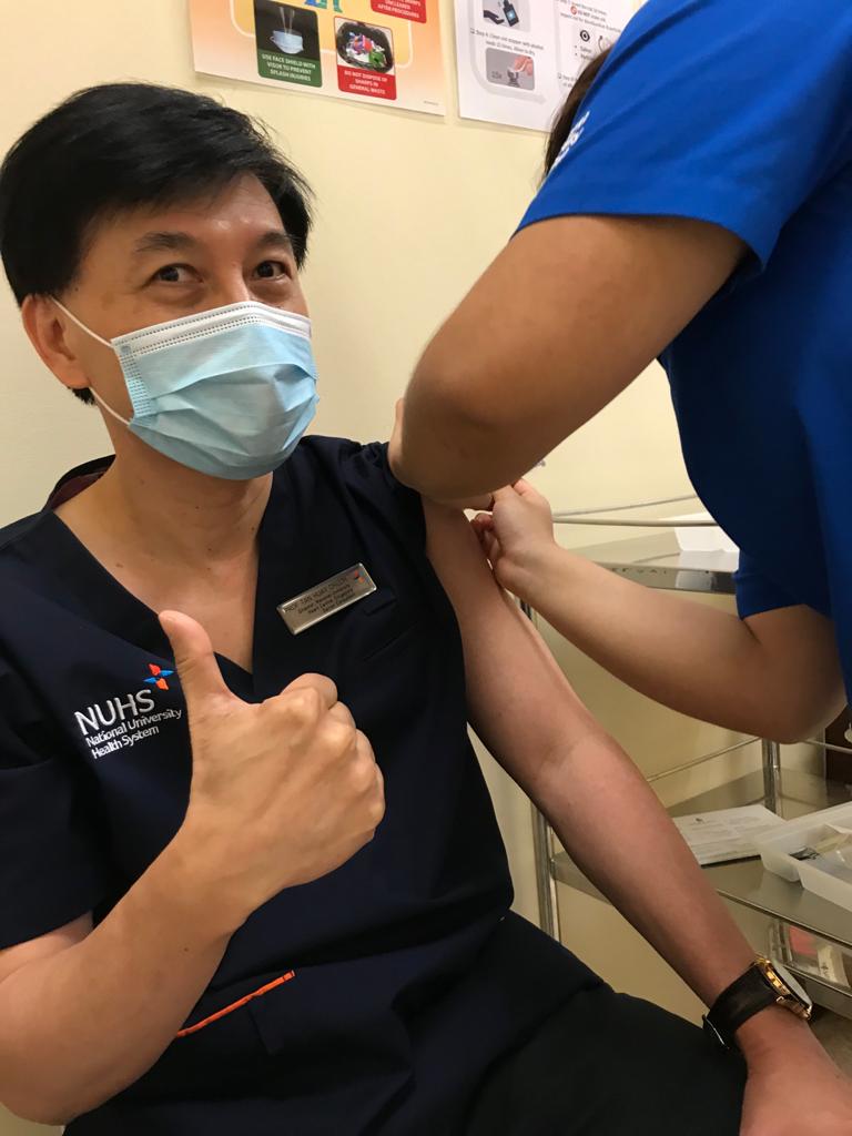 Prof Tan Huay Cheem receiving his COVID-19 vaccine