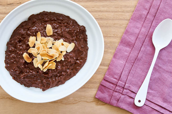 - Over a medium heat, mix the brown rice, almond milk, cinnamon and salt evenly in a pot and bring it to a boil.