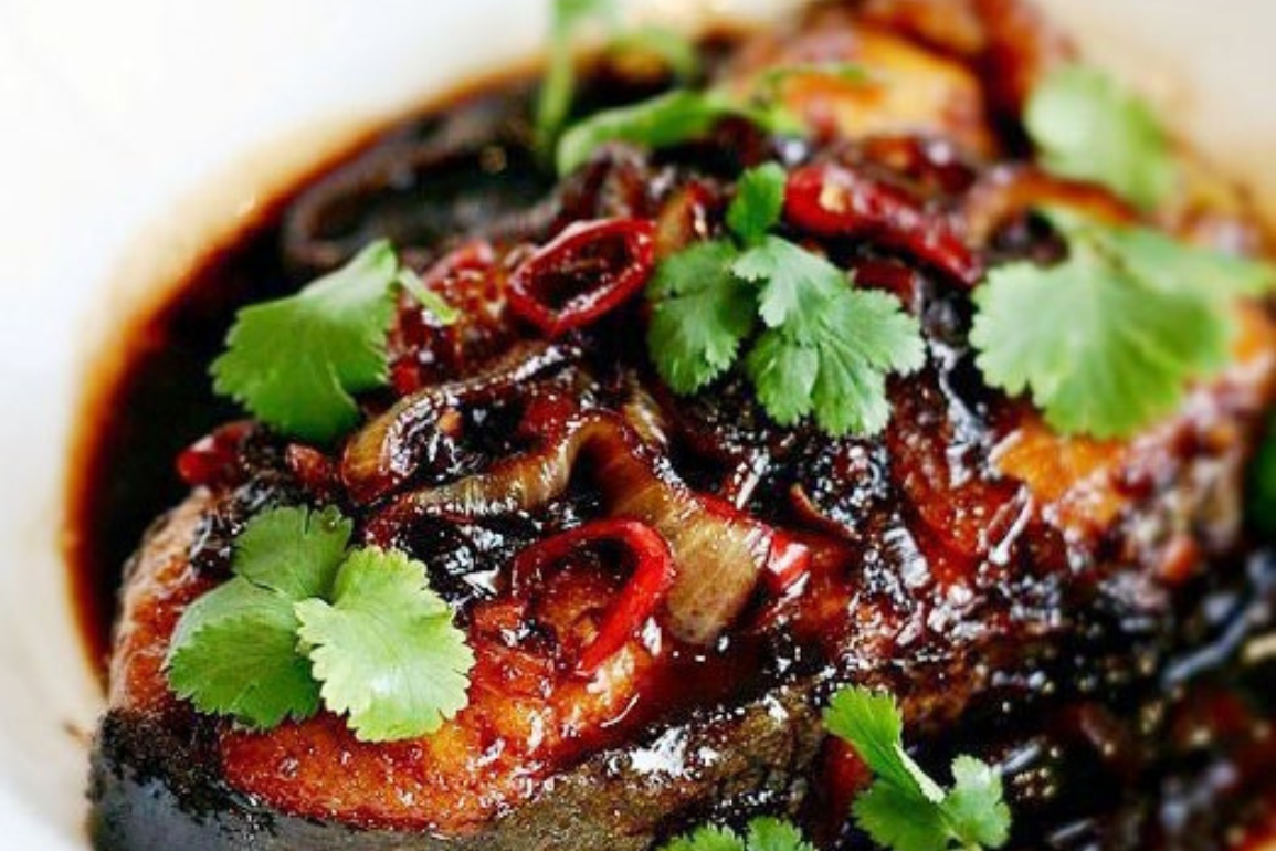 - In a bowl, mix the grated ginger and minced garlic, grounded red chilli, water, light and dark soy sauce and lemon juice.