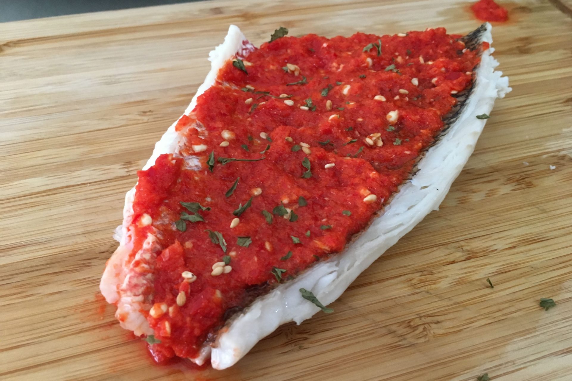 - Marinate the fish by spreading the chilli paste all over. Let it sit for at least 10 minutes.