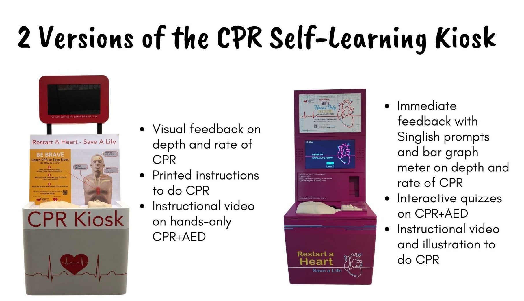 If you are interested in placing the CPR self-learning kiosk* at your premises, you can contact us at cpraed@heart.org.sg.