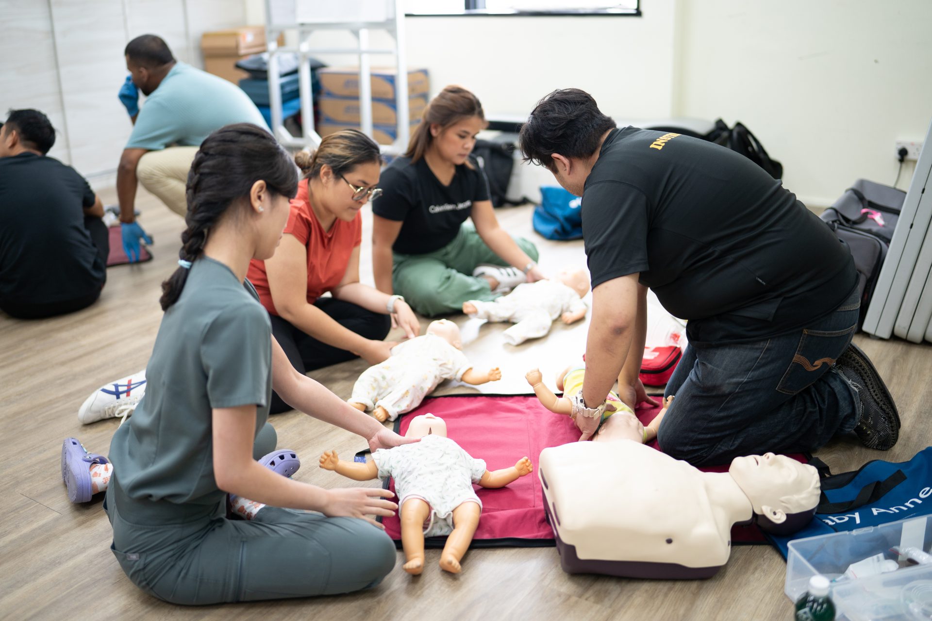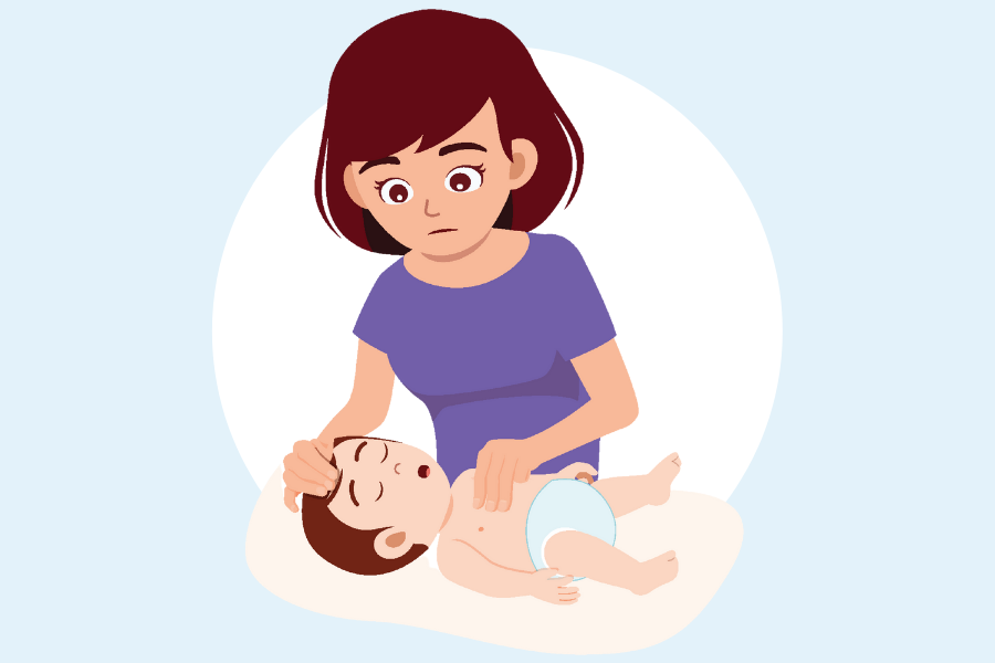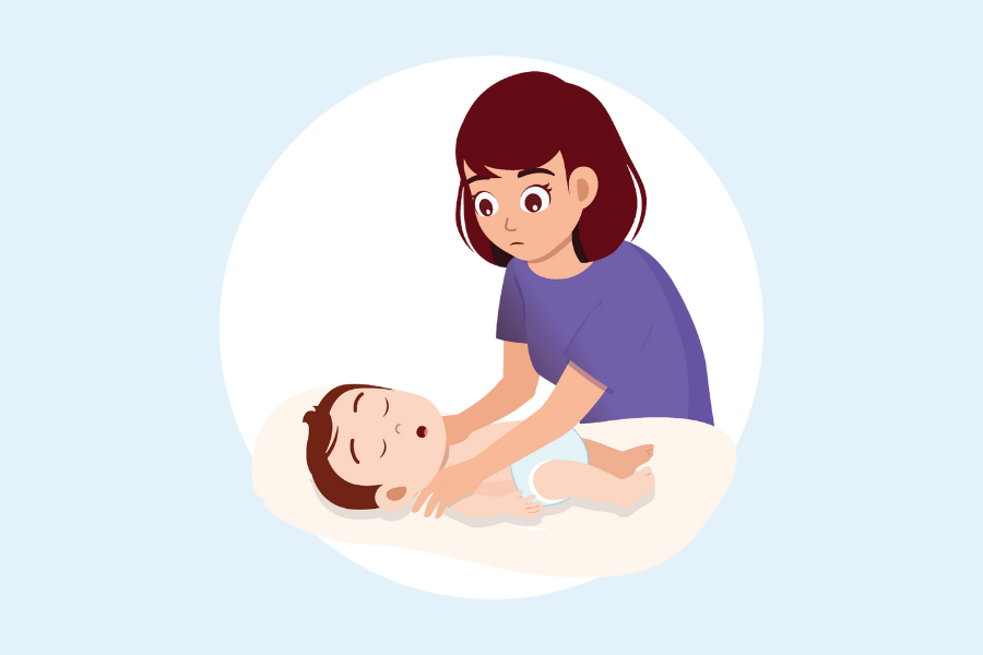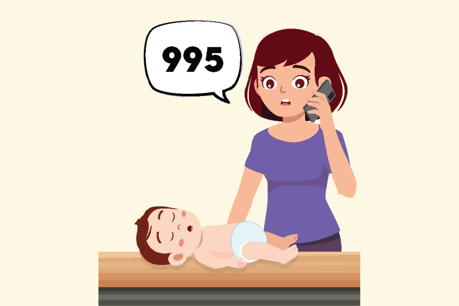 Place the infant on a firm and flat surface and call 995 for ambulance immediately.