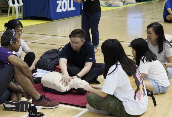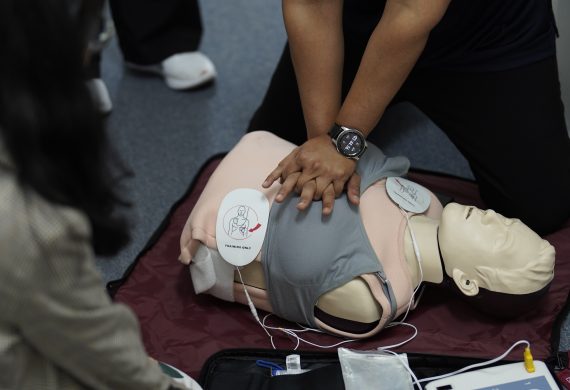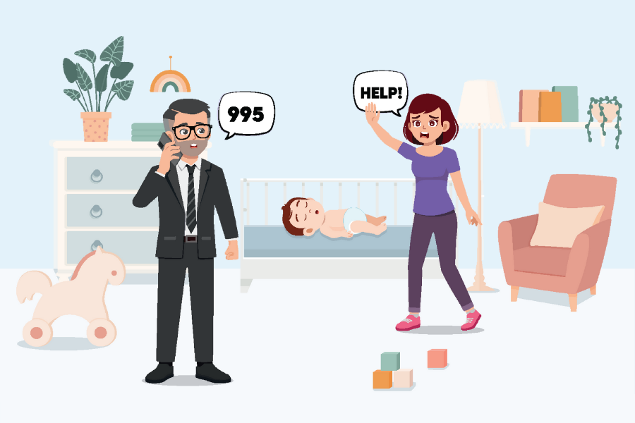 Although it is rare for an infant below 1 year old to suffer from a cardiac arrest due to heart disease, it could happen due to traumatic injury or accident, e.g. traffic accident, drowning or choking. If you notice that an infant is not breathing, has abnormal breathing, or is unconscious, do not panic. Just like performing CPR+AED on an adult, follow the steps DRS ABC.